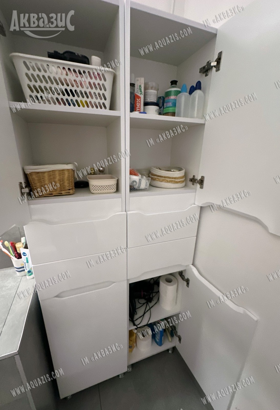 Добрый день, очень порадовала функциональная удобная тумба с корзиной для белья. Зеркало большое удобное с полочками для хранения. Заказом довольна.